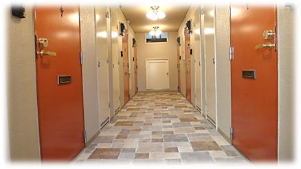 「オートロックエントランスホールを入って階段を4階に上がってみましょう...」