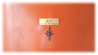 玄関ドアには... シティホテルのようなサテンゴールドのルームナンバープレート!