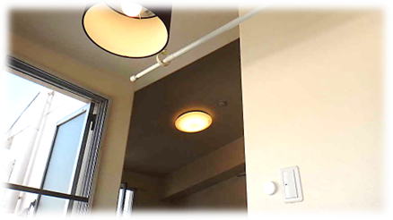 古いイメージの旧ナショナル製照明器具からLIXIL製の円筒形照明に交換し、